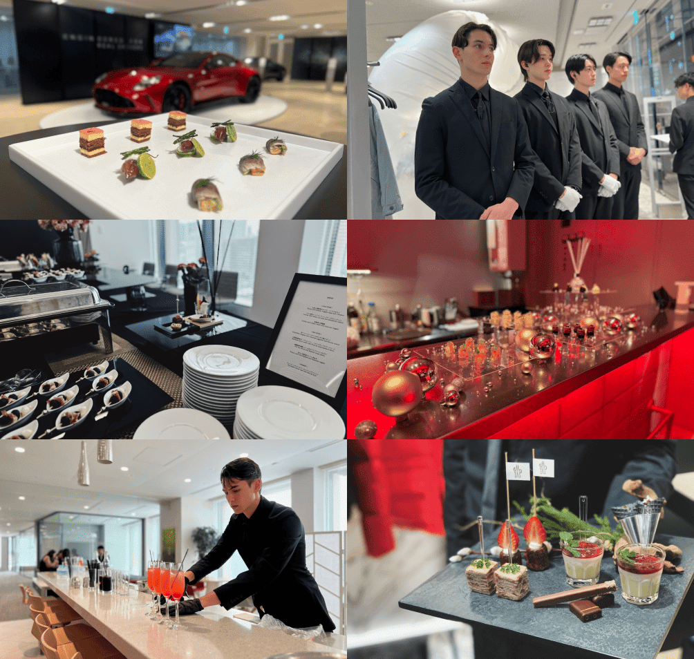 ブランド様のシグネチャー、コレクションテーマなどに沿ったフィンガーフードやドリンク、またインスタレーションのご提案が可能です。 高いアピアランスを有したスタッフがゲスト様の接遇をいたします。